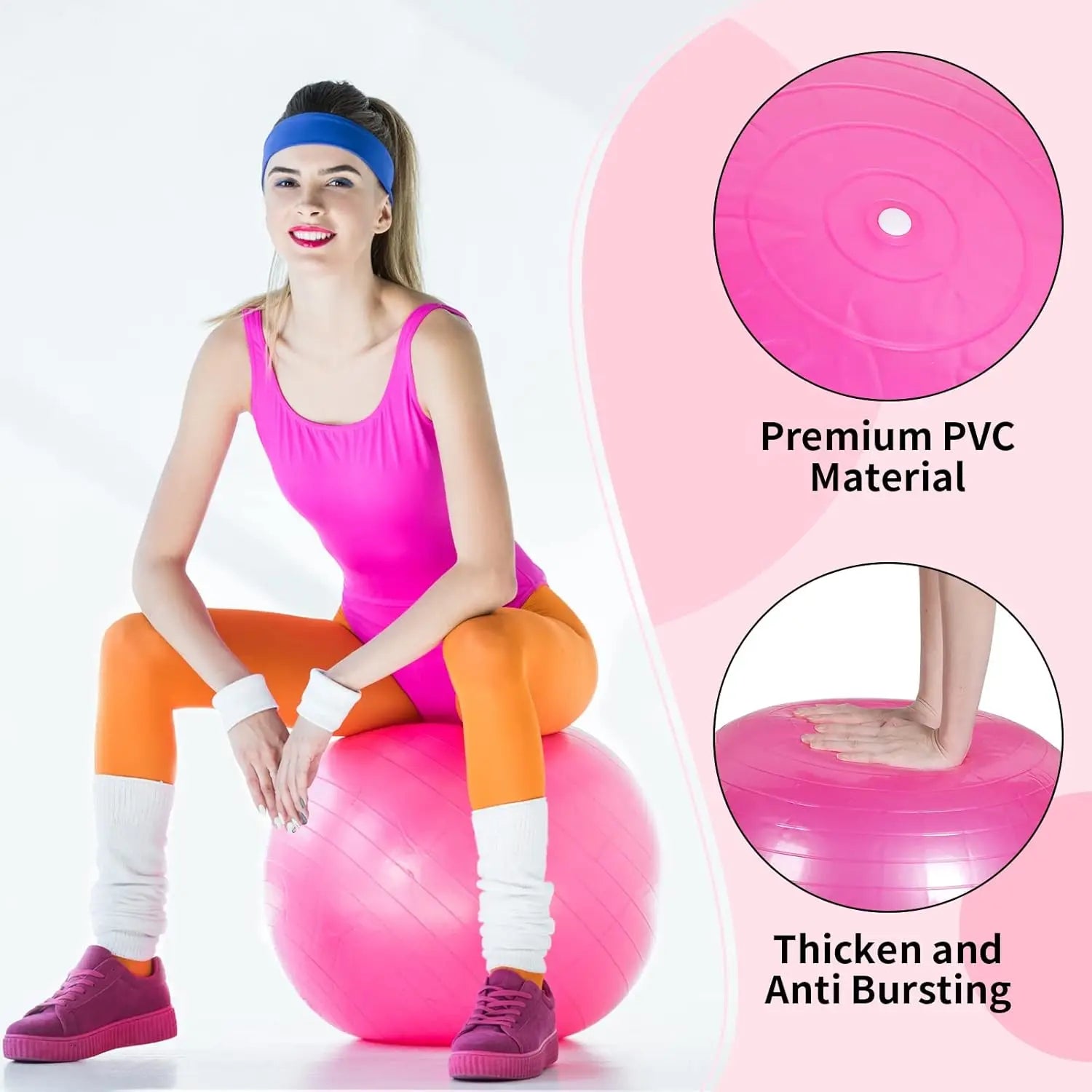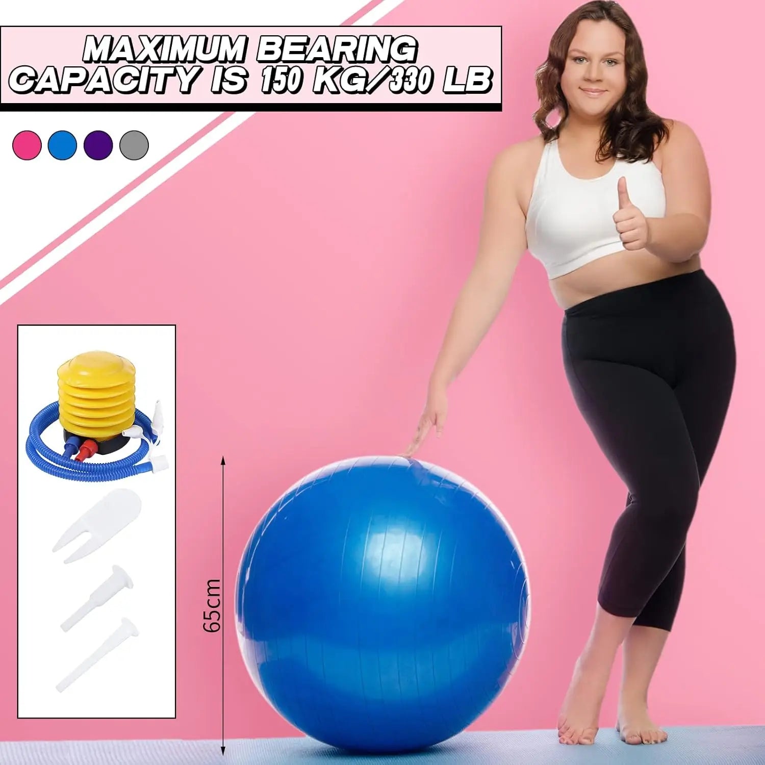 5. Easy to Inflate: the 65 cm yoga ball is equipped with air plugs, valve remover tools and a pump, you are convenient to use suitable accessories to inflate or deflate; It is recommended to inflate about 80-90% for safe use