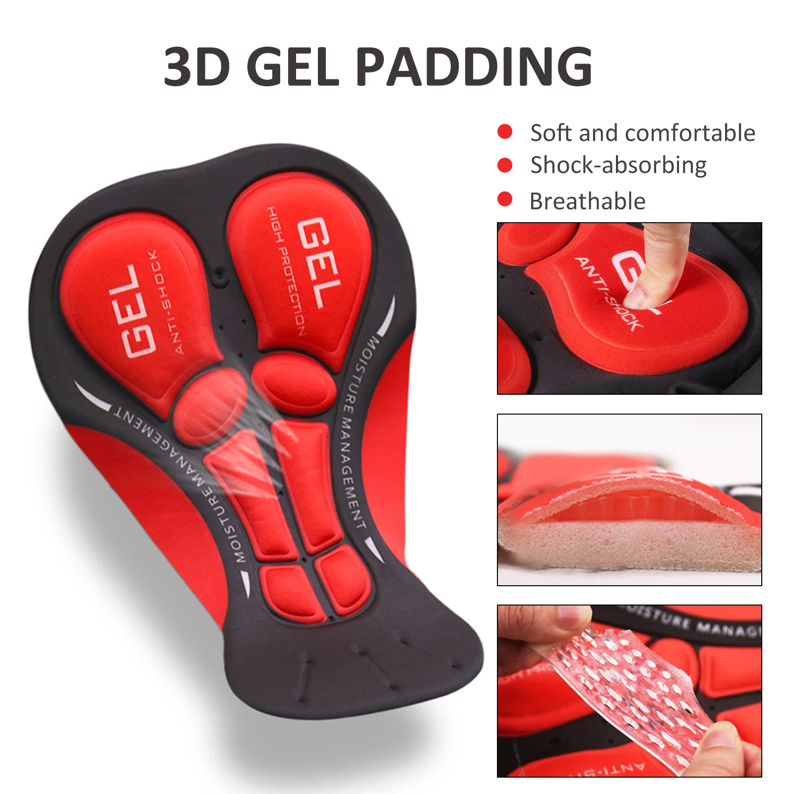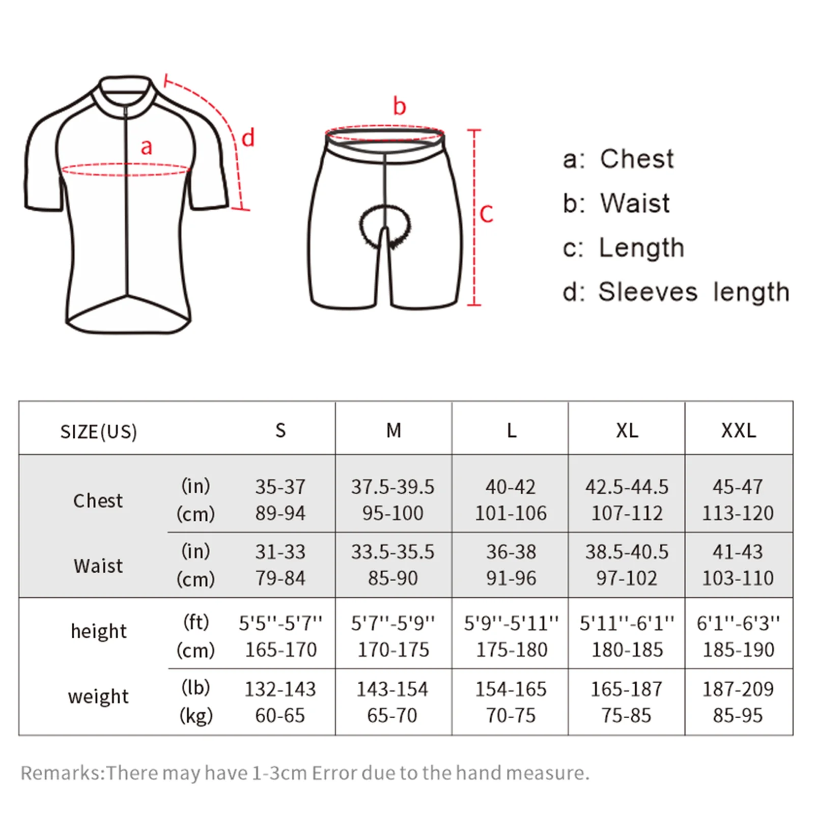 This Cycle clothing set is made from premium polyester fabric, breathable, moisture-wicking and comfortable. It features 3 rear pockets for convenient storage, reflective strip for good visibility in low light, shock-absorbing gel padding for long-distance riding comfort, silicone grippers for staying in place. All the highlights make the Cycle jersey and shorts a must-have choice for Cycle enthusiasts.Features: