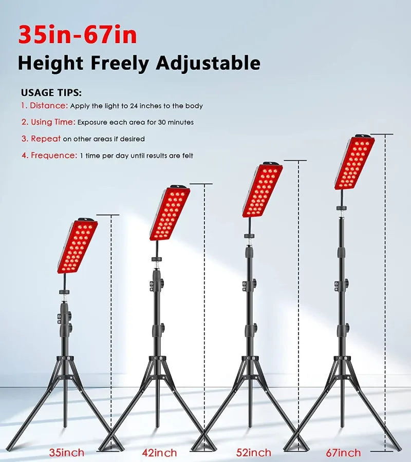 [Easy to Install,Store and Use] - The sturdy tripod keeps the red light stable without shaking. The red light therapy lamp bracket can be extended from 35 inches (about 88.9 cm) to 67 inches (about 170.2 cm). The height and angle of the bulb can be adjusted so that you can adjust the height to light up your project.